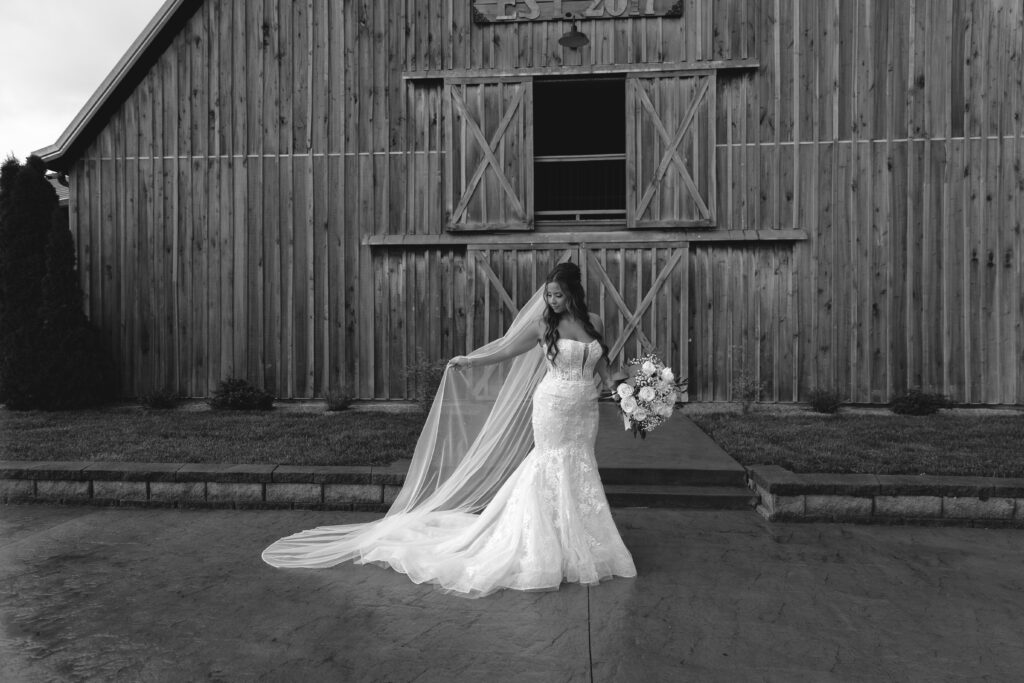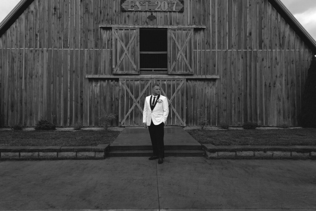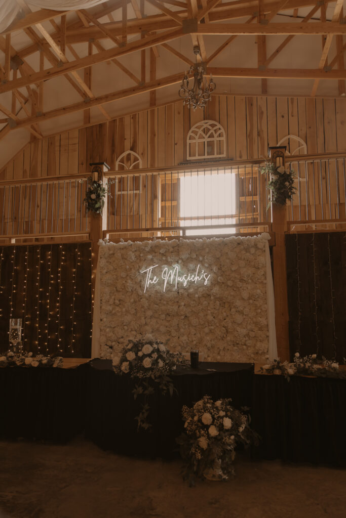 The barn’s neutral palette complemented their black wedding theme beautifully, allowing the dramatic color choice to truly shine. The venue’s experienced staff ensured that every detail was executed flawlessly, from the ceremony setup to the reception transition.