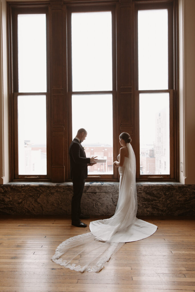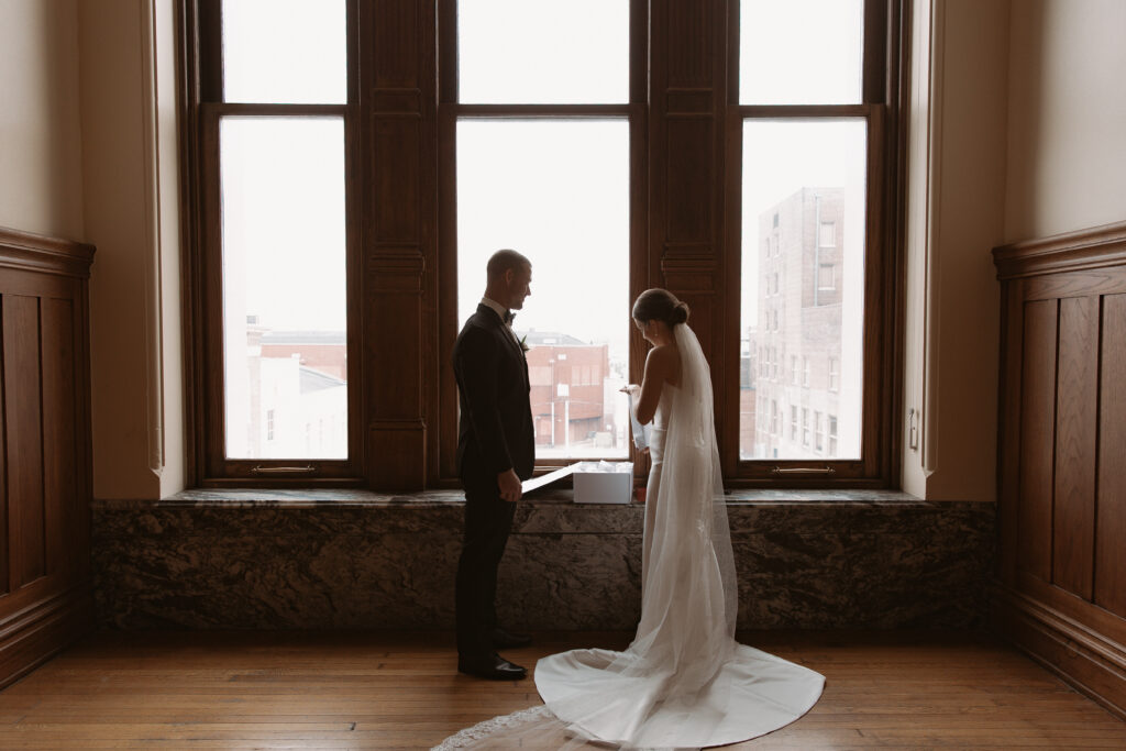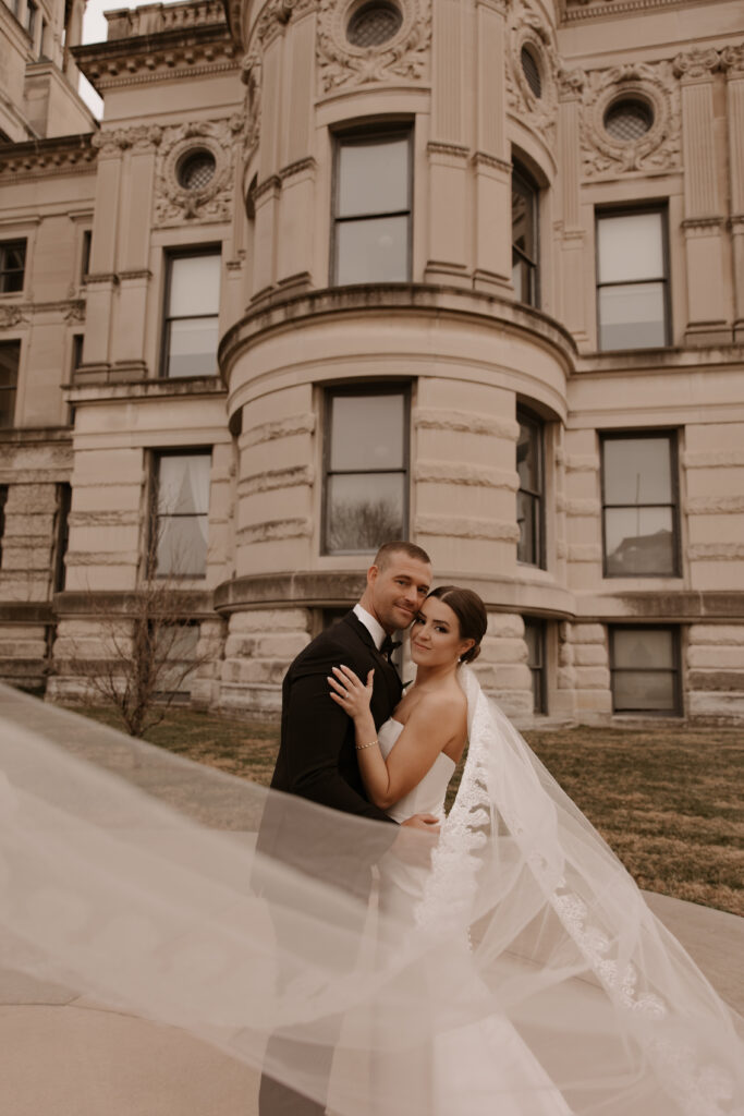 Jayda and Ryan’s wedding at the Old Courthouse in downtown Evansville, Indiana felt romantic in the simplest, most intentional way. They chose an all-inclusive courthouse experience, which allowed them to fully enjoy the day without stress or distraction. Because of that, the joy and ease of the day showed in every moment.