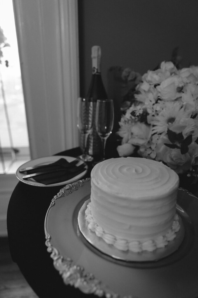 After the ceremony, Jayda & Ryan enjoyed a champagne toast, charcuterie, and a two-layer cake together alone — simple, celebratory, and exactly what the day called for.