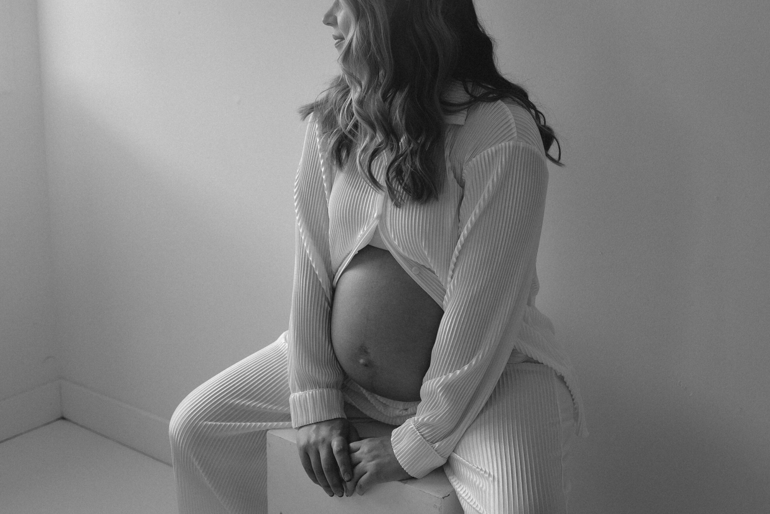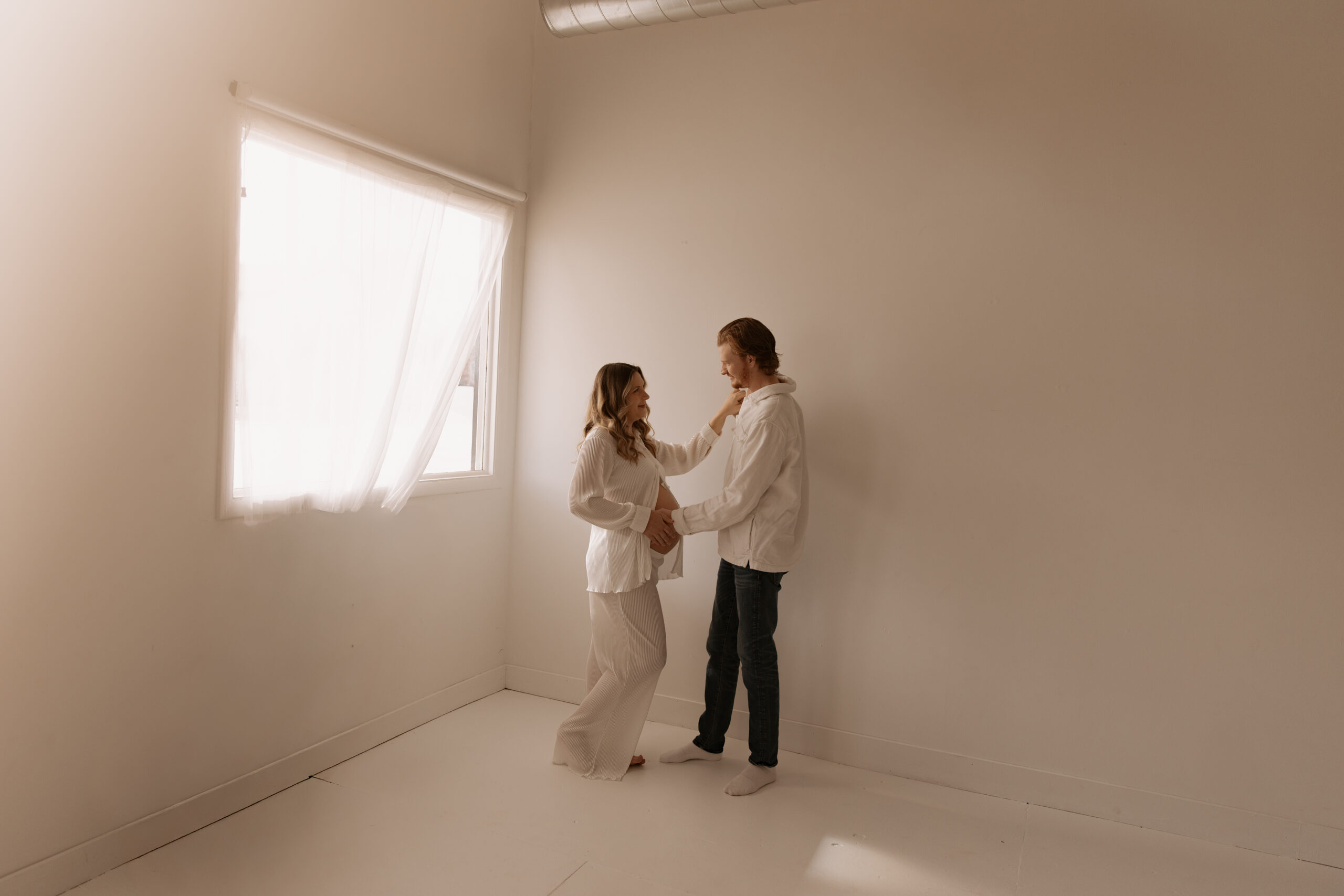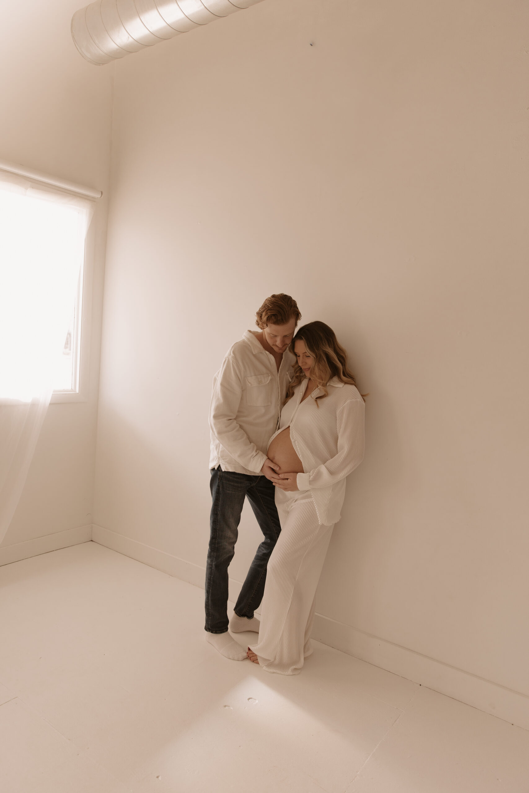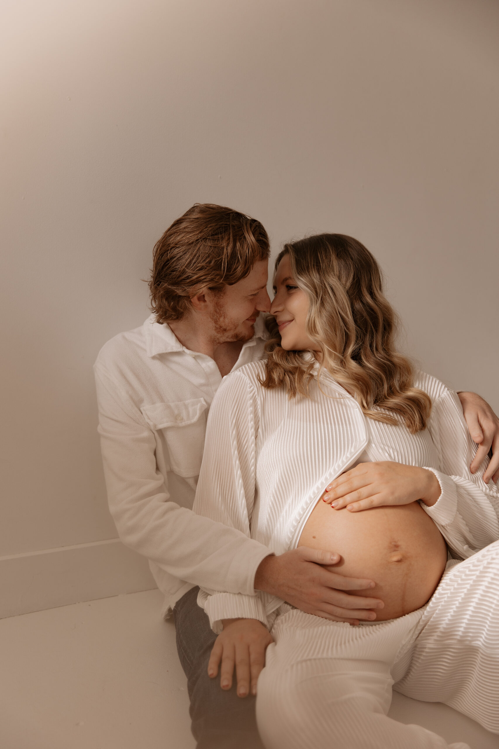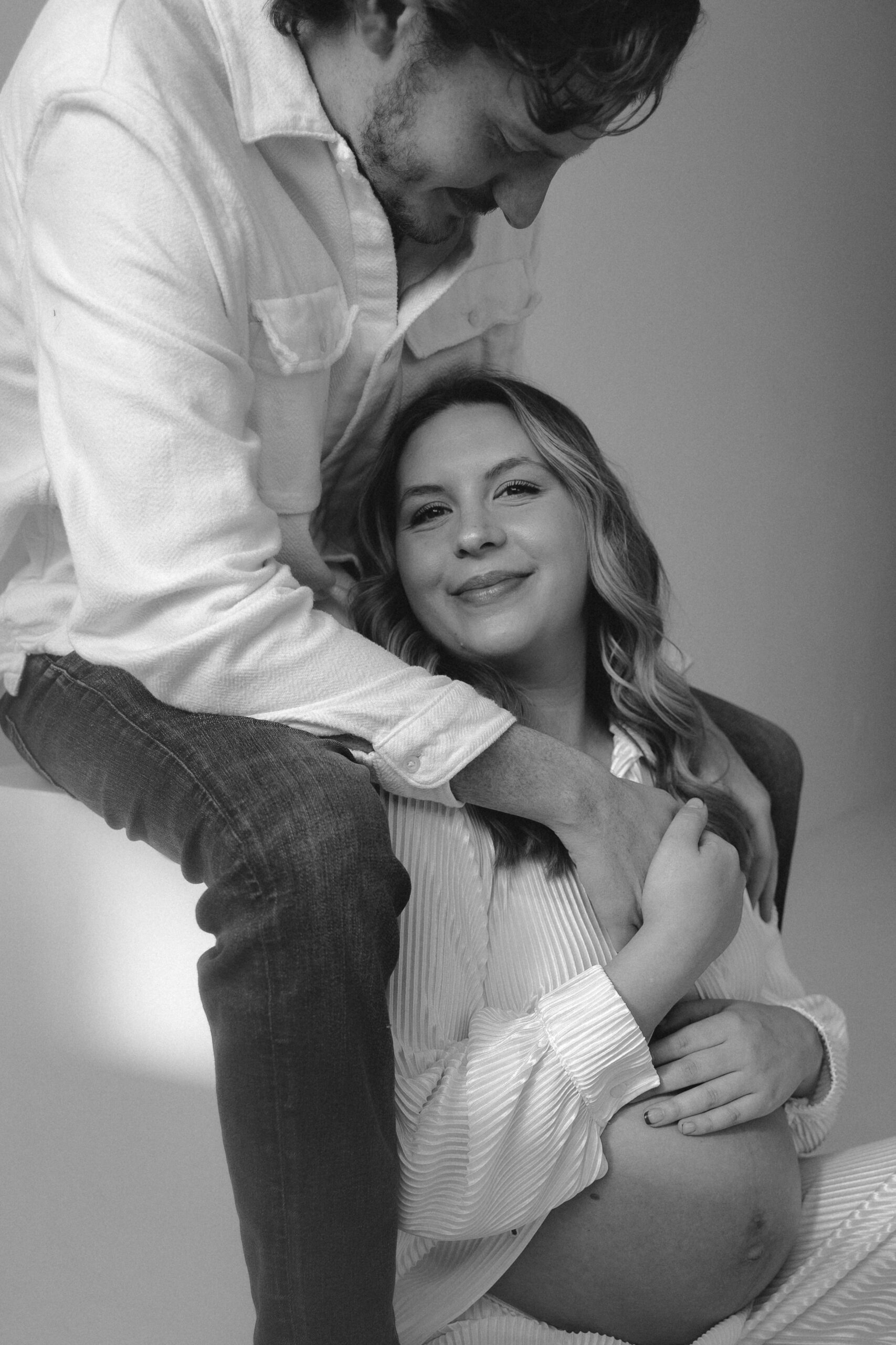 There’s something so special about documenting seasons like this. The same soft light, the same calm space in a studio… but such a meaningful new chapter. Watching the way Nolan looks at Stephanie and the gentle way they’re already loving their baby is everything. This studio maternity session felt intimate, cozy, and full of anticipation for what’s to come.